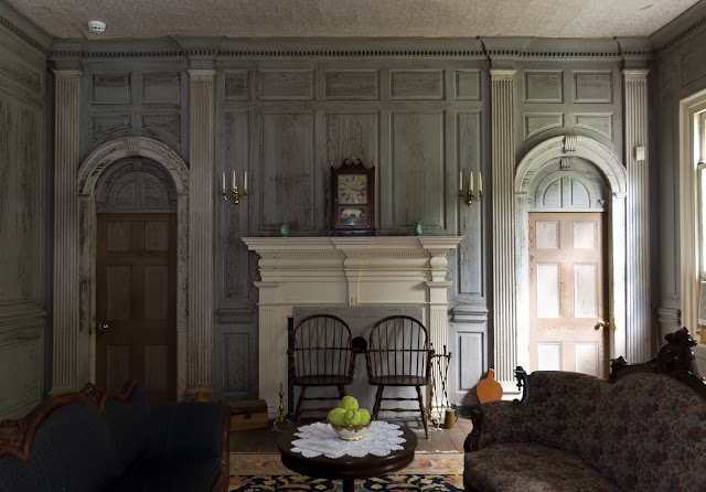 An 1882 Philadelphia mansion. This one has it all with Victorian mirrors, beautiful door surround, and painted ceiling.
